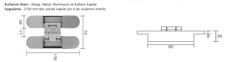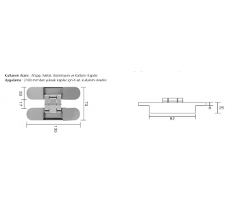 Uygulama : 2100 mm’den yüksek kapılar için 4 ad. kullanımı önerilir.